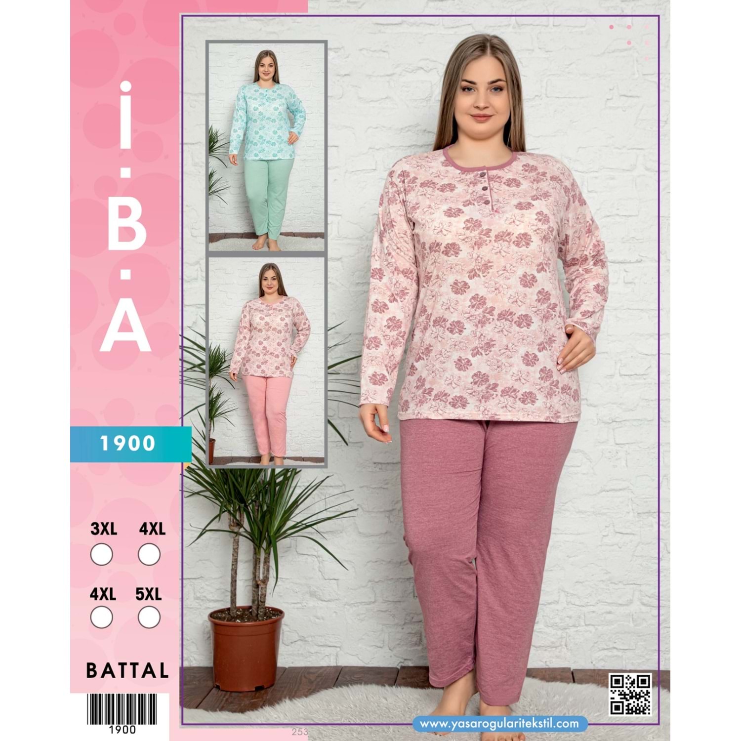 1900 İBA BAYAN BATTAL PİJAMA TAKIMI - GÜL KURUSU