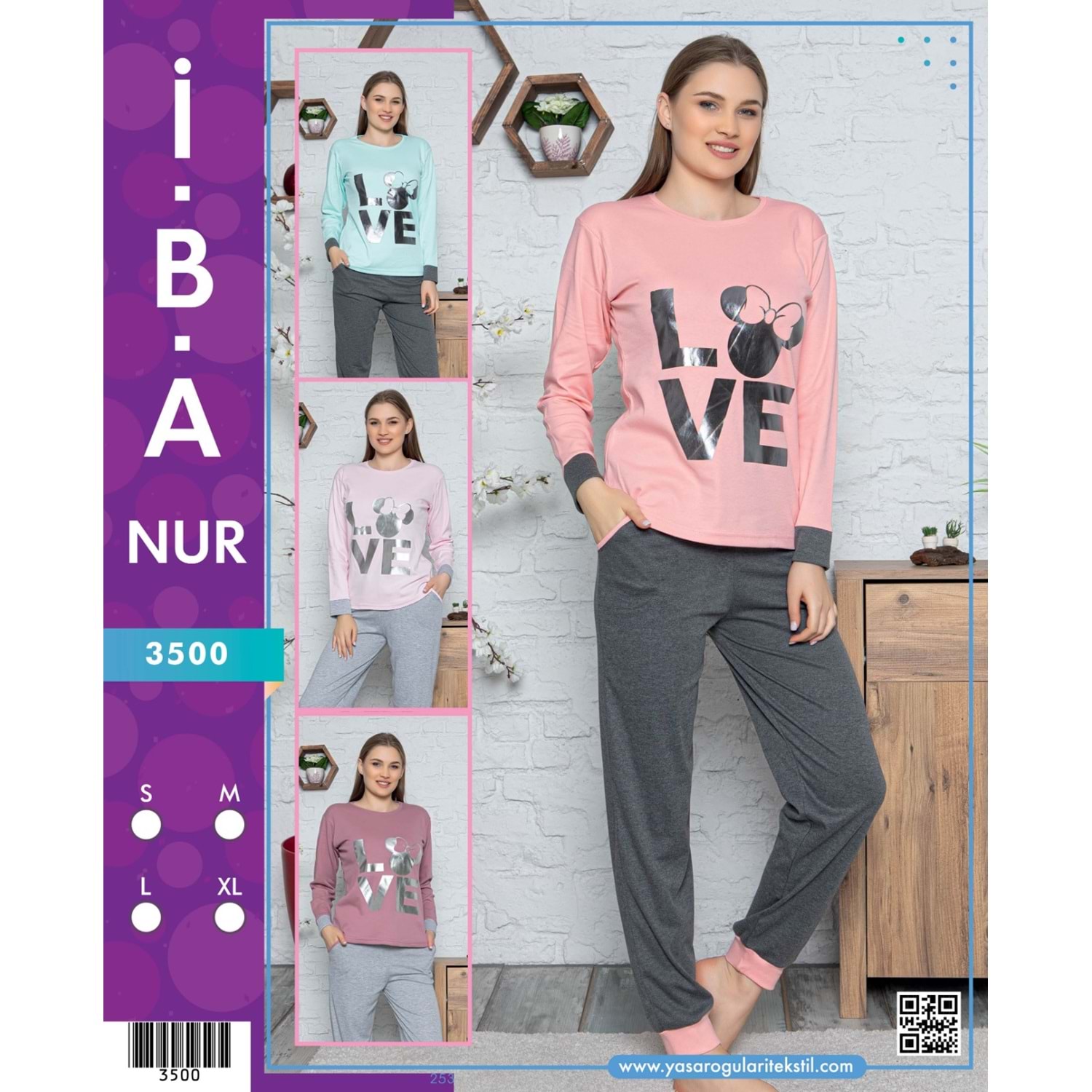 3500 İBANUR BAYAN PİJAMA TAKIMI - GÜL KURUSU